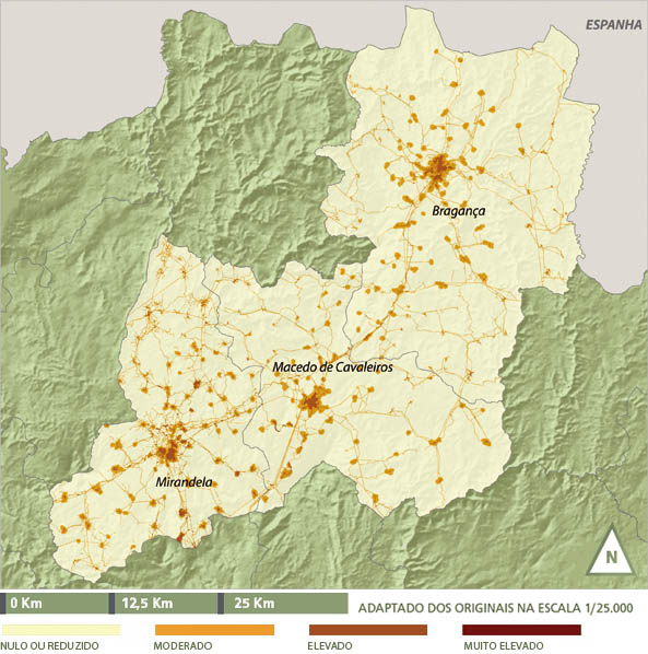 A vulnerabilidade pode ser reduzida, moderada e elevada nos três concelhos. De um modo geral, apresenta-se reduzida por todo o território concelhio, excepto nos aglomerados populacionais, onde cruzam elementos de vulnerabilidade a sismos como a população, o edificado, as vias de comunicação e as principais infraestruturas. Assim sendo, em todas as povoações a vulnerabilidade é moderada, sendo que nas cidades de Mirandela, Macedo de Cavaleiros e Bragança é elevada, devido à maior concentração desses elementos.