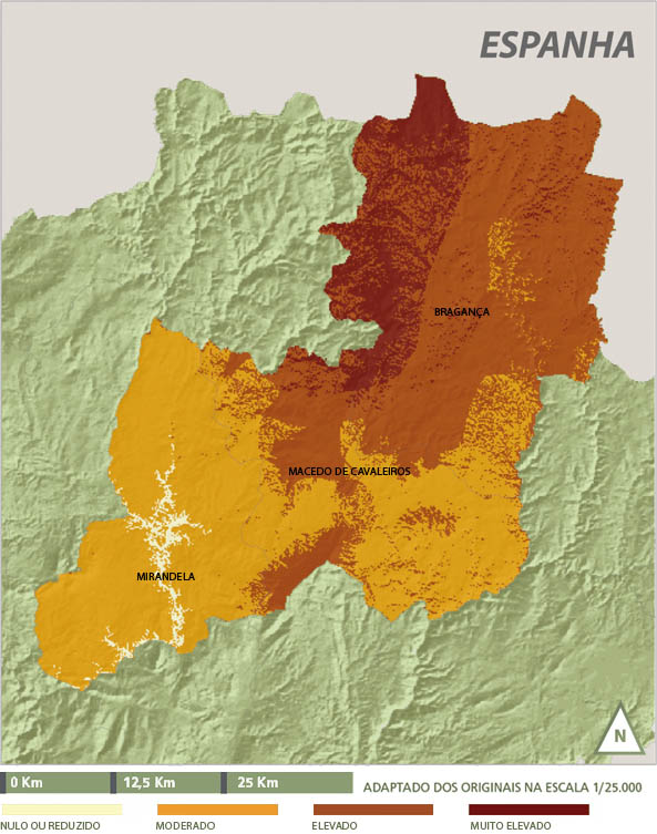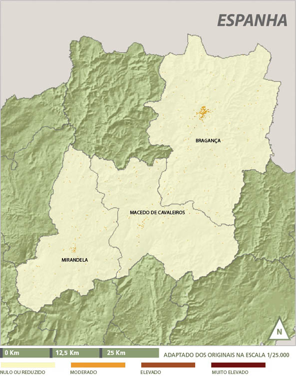 Ocorrências anteriores – a única informação existente para a elaboração desta variável corresponde aos dados extraídos das normais climatológicas (período de 1961-1990), mais precisamente ao número de dias com solo coberto de neve. Para tal utilizaram-se as estações de Bragança, Mirandela e Mogadouro do Instituto de Meteorologia. A definição da ponderação a atribuir foi feita com base no facto do maior número de dias, ou seja, foi atribuído ao concelho com registo de maior número dias a maior ponderação e vice-versa;