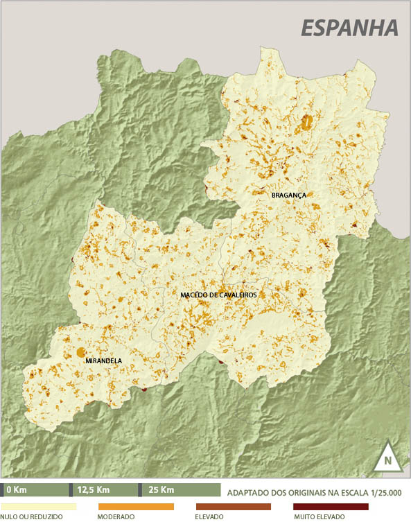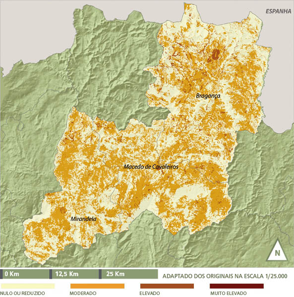 Por sua vez, ao nível da vulnerabilidade predomina a perigosidade reduzida a moderada sendo que esta última corresponde fundamentalmente às áreas sociais e a áreas agrícolas mais susceptíveis a geadas.